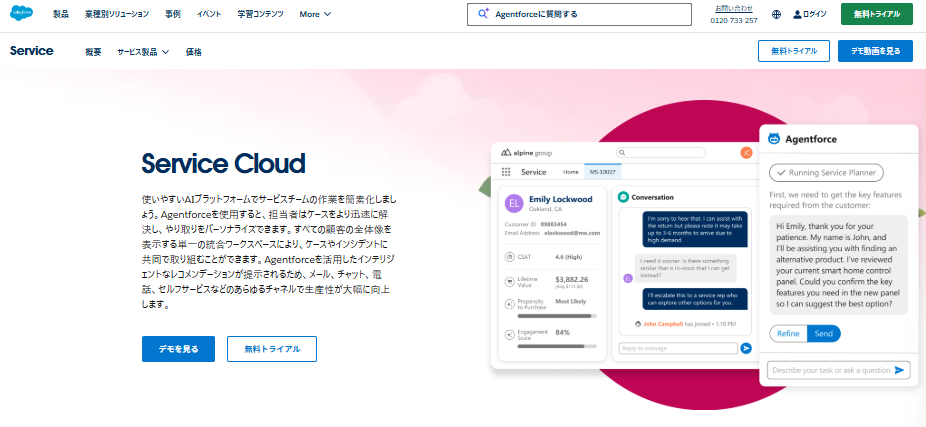 ServiceCloudは、株式会社セールスフォース・ジャパンが提供しているコールセンターシステムです。