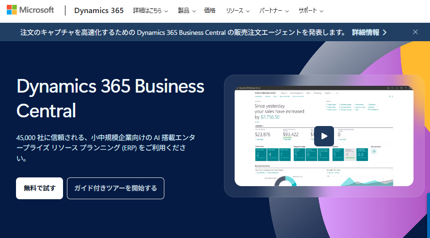 Microsoft Dynamics 365は中堅・中小企業向けの統合型ERPです。
